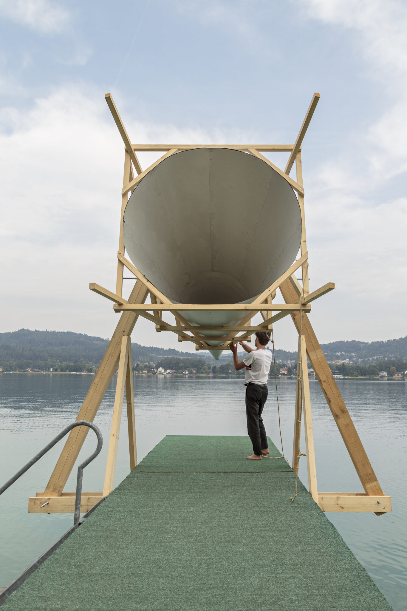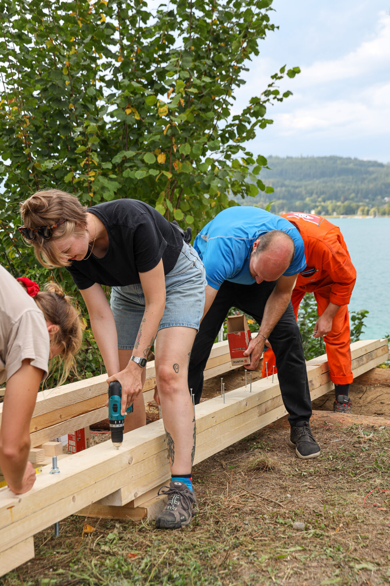 Over two weeks, students designed and built a series of three architectural interventions to address and critique the hyper-privatised nature of Austria’s Lake Wörthersee.
