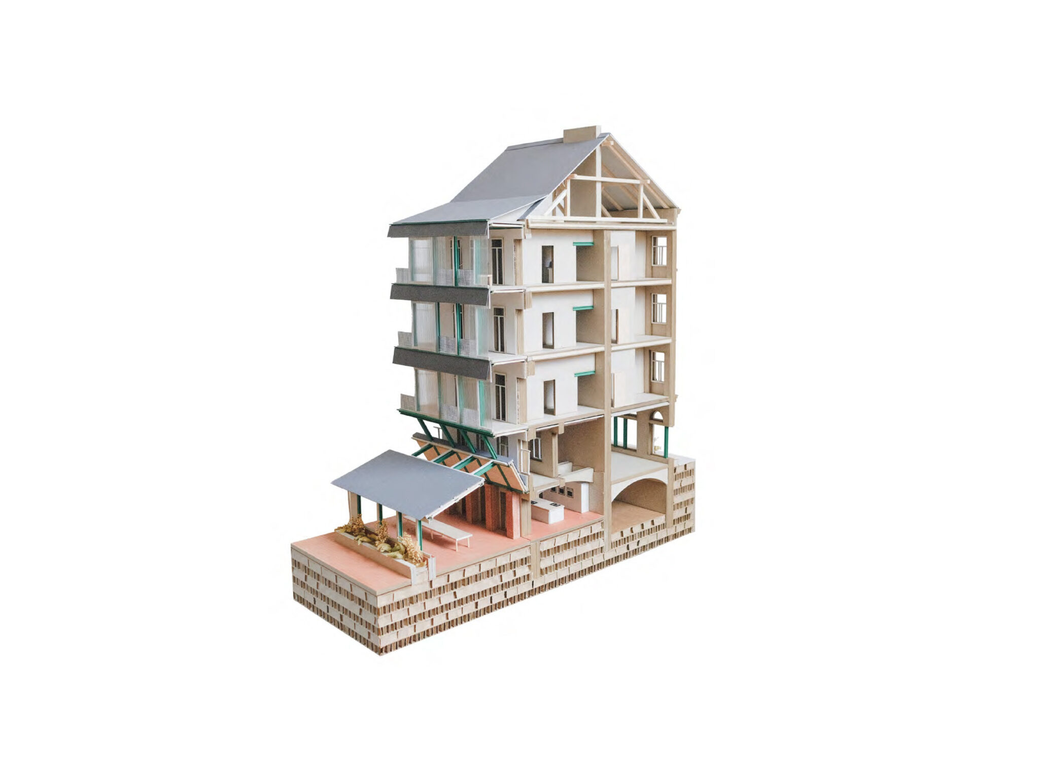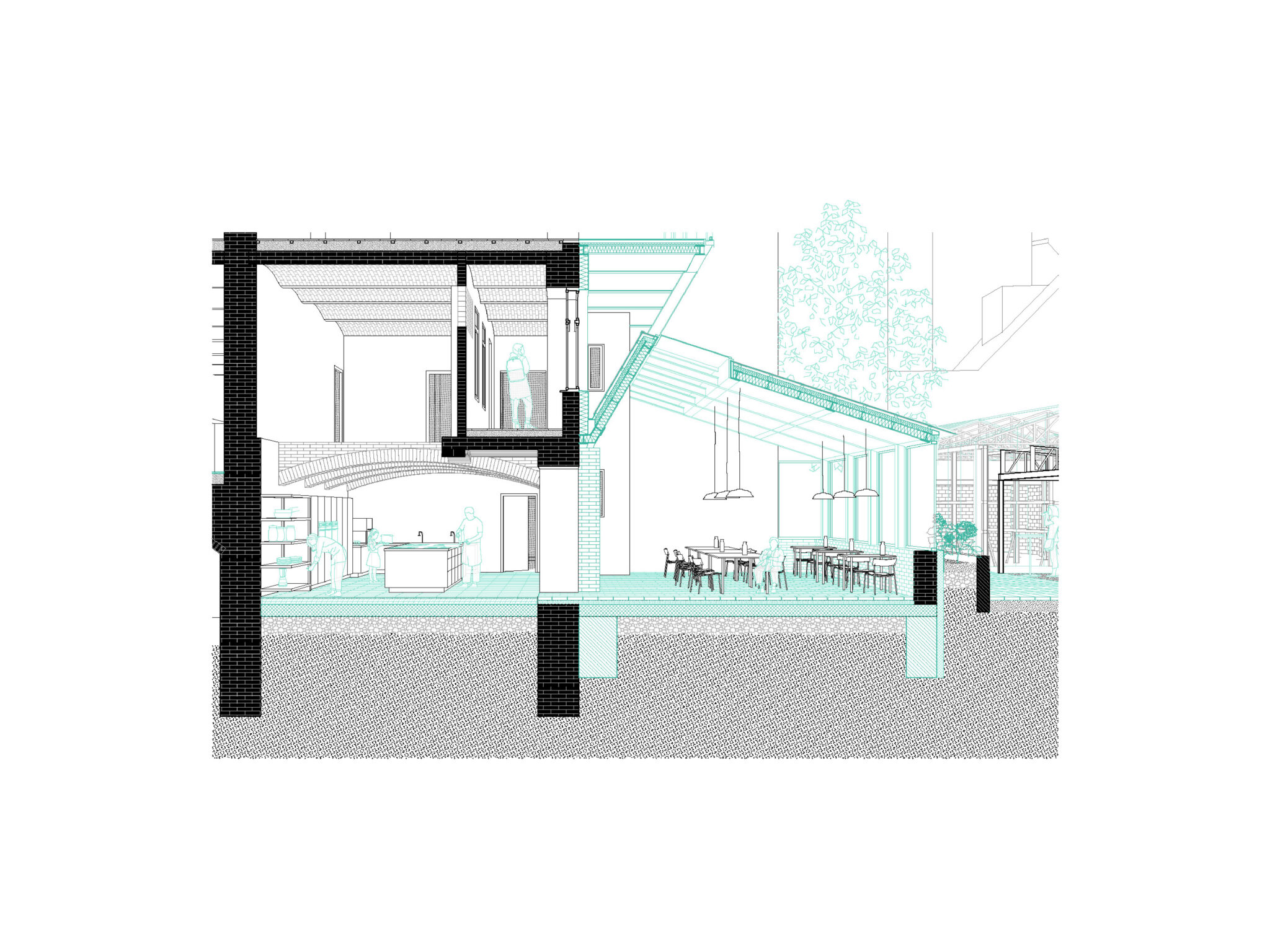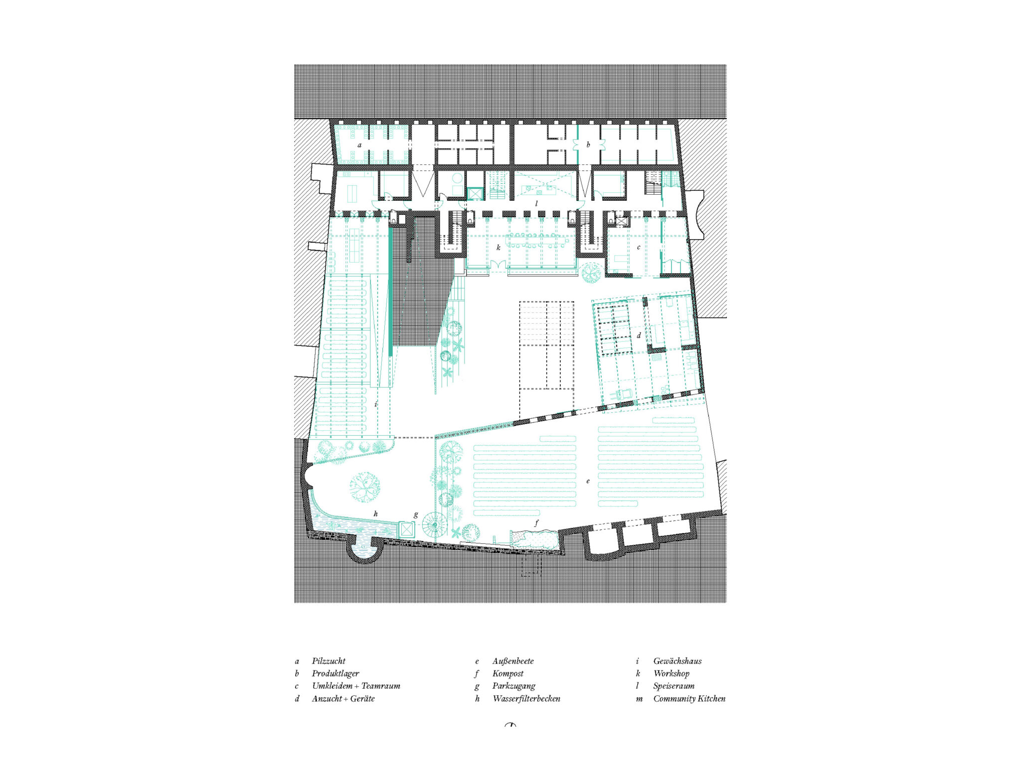 Das implementierte Nutzungskonzept folgt dem Genius Loci und sieht Wohnen in Kombination mit urbaner Lebensmittelproduktion vor. Durch Anbau, Verarbeitung und Veräußerung von Lebensmitteln wird leistbarer Wohnraum unterstützt, der Menschen aus prekären Wohnverhältnissen, Auszubildenden, sowie an einem integrativen Hausprojekt Interessierten, ein Zuhause bieten soll. Im engen Dialog mit der gründerzeitlichen Struktur wird das Wohnhaus so als sozialer Ort weitergedacht. Dabei ist die Entwicklung von geteilten Räumen sowie gemeinschaftlichen Wohntypologien von zentraler Bedeutung. Um Austausch und Sichtbarkeit zu ermöglichen, fungiert das Grundstück als eine Art Stadtbaustein, mit teils öffentlichen Nutzungen (Community Kitchen/ Workshopfläche) und der Erschließung einer kaum genutzten innerstädtischen Grünfläche (Seminargarten).