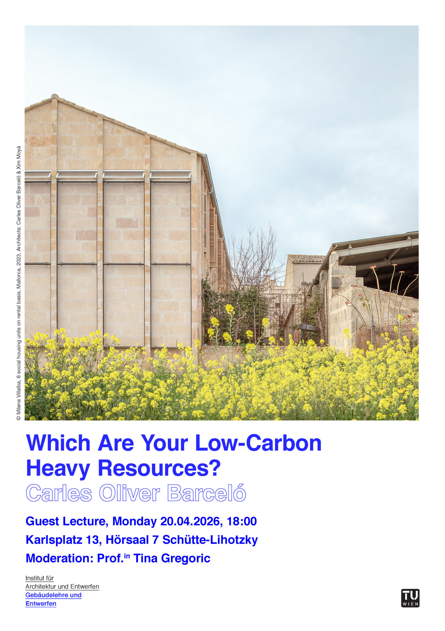 The Guest Lecture is part of the Design Studio „Mallorca: Social Housing with Local Resources“ (BA 253.O90, MA 253.O91)